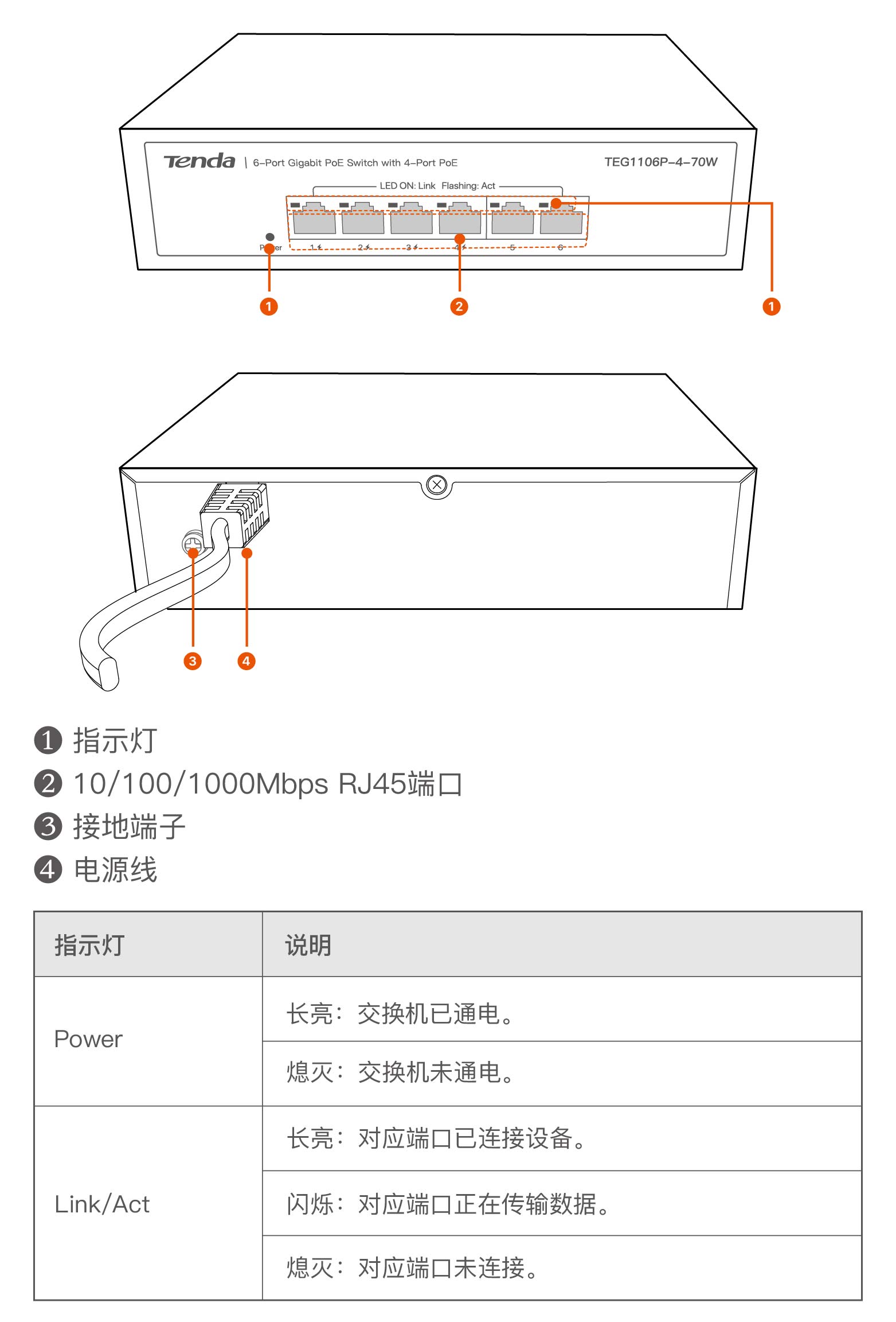 4 指示灯、接口说明